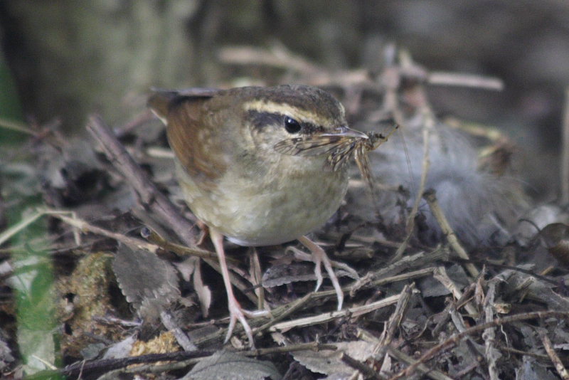 ブッシュの中で嘴で虫を捕っている。振り回してから丸呑み。